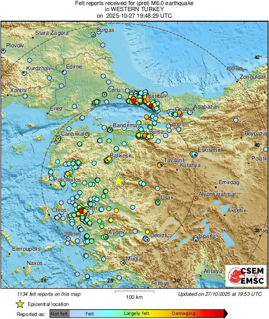 Tërmeti u regjistrua në provincën Balıkesir, në veriperëndim të vendit ndërsa sipas të dhënave nga Presidenca e Turqisë për Menaxhimin e Fatkeqësive dhe Emergjencave (AFAD) dhe Qendra Sizmologjike Euro-Mesdhetare (EMSC), tërmeti ishte me magnitudë 6.1 dhe thellësi rreth 5.99 kilometra.